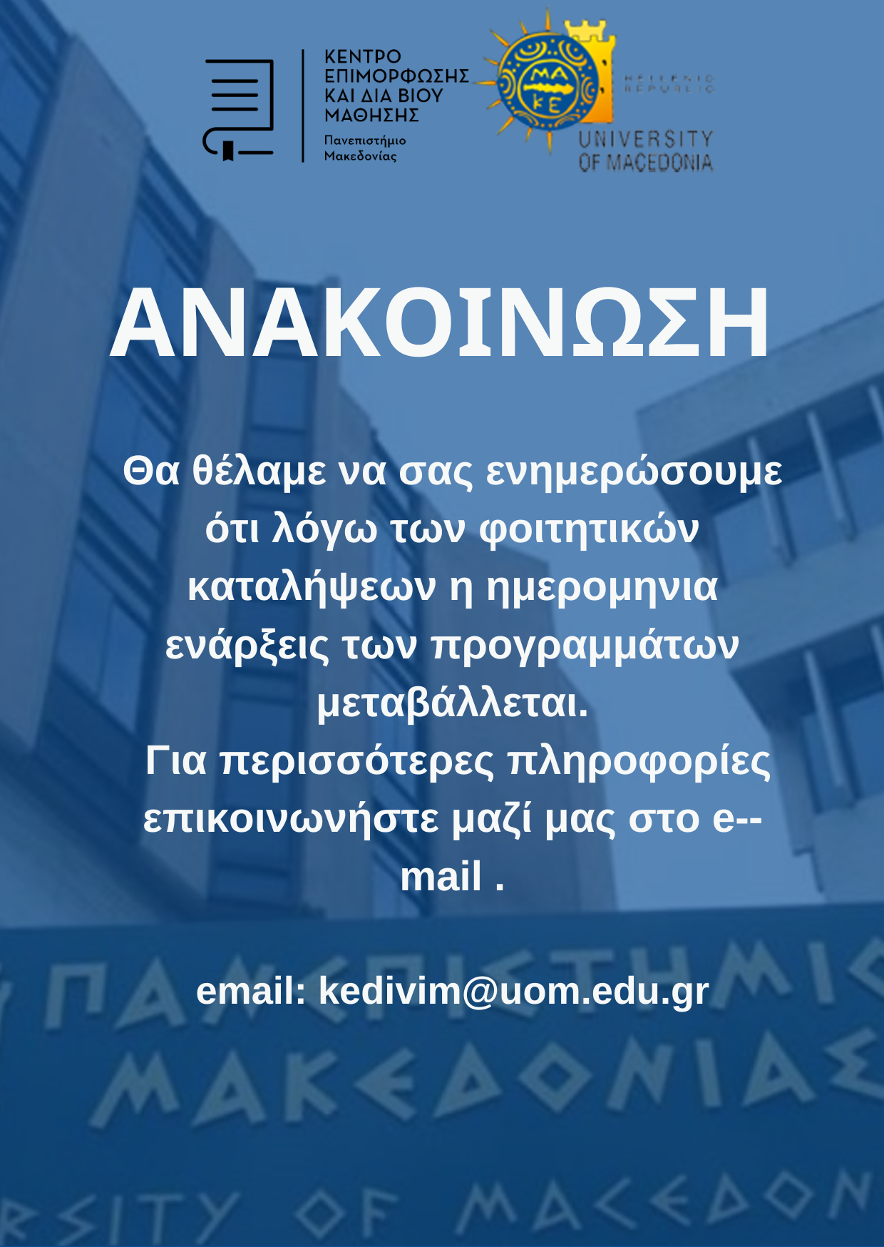 Application for inclusion in the Register of Instructors of K.E.D.I.V.M. University of Macedonia